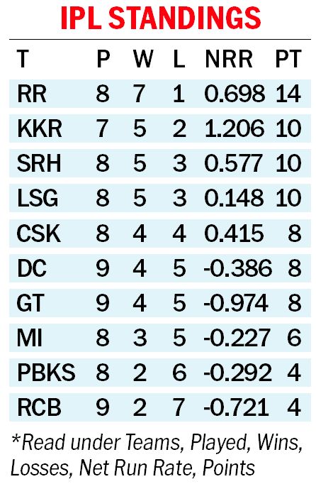 - SRH: 171/8 in 20 overs (Abhishek 31, Cummins 31; Karn 2/29)
